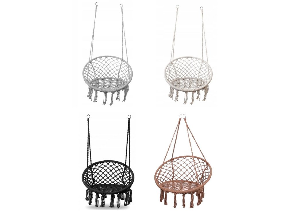 Zatraktivní každý interiér, ozdobné výplety a třásně zdůrazní moderní design. Pevná rukojeť umožňuje pohodlné zavěšení na strom, na konstrukci houpačky nebo na hák připevněný ke stropu.
