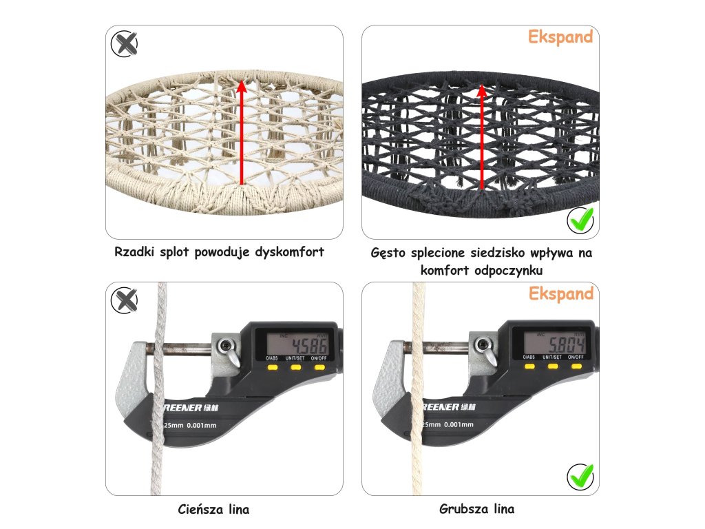 Husté uzlové tkaní na ráfcích dodává estetiku a ovlivňuje kvalitu relaxace.