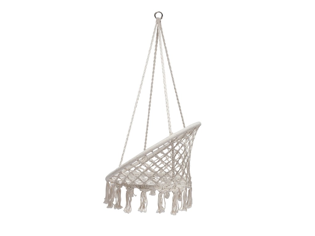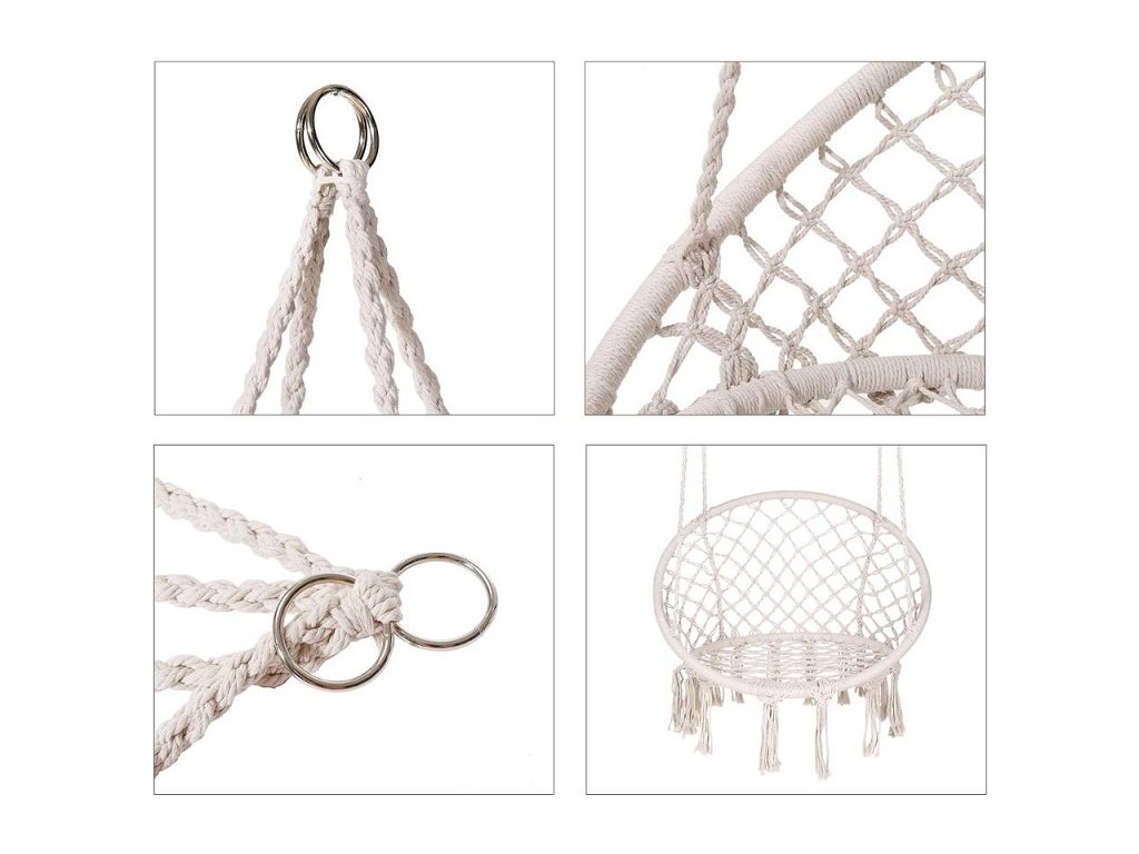 Zatraktivní každý interiér, ozdobné výplety a třásně zdůrazní moderní design. Pevná rukojeť umožňuje pohodlné zavěšení na strom, na konstrukci houpačky nebo na hák připevněný ke stropu.