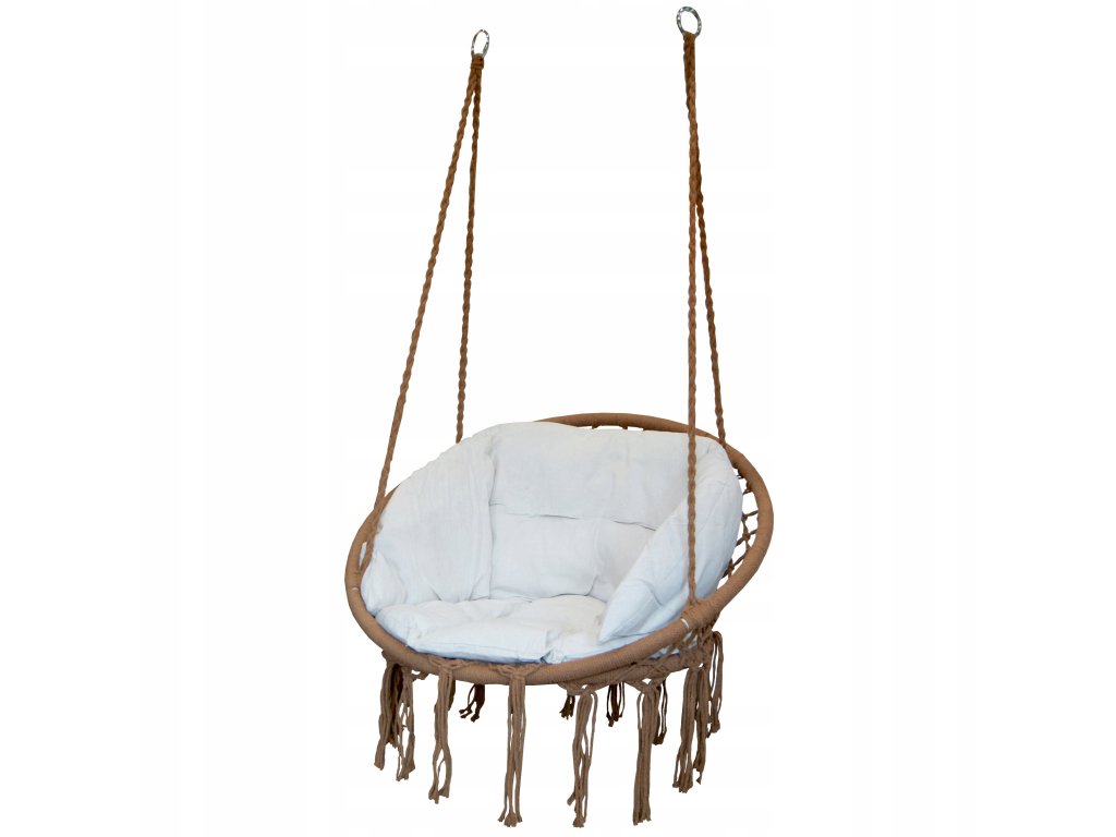 Zatraktivní každý interiér, ozdobné výplety a třásně zdůrazní moderní design. Pevná rukojeť umožňuje pohodlné zavěšení na strom, na konstrukci houpačky nebo na hák připevněný ke stropu.