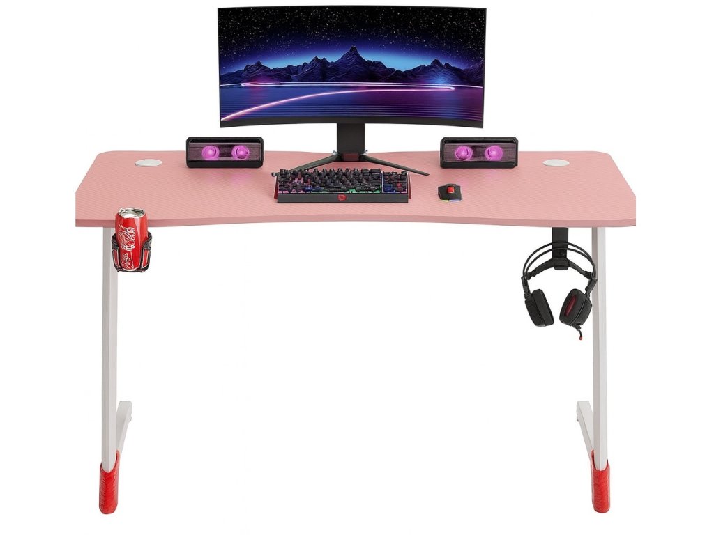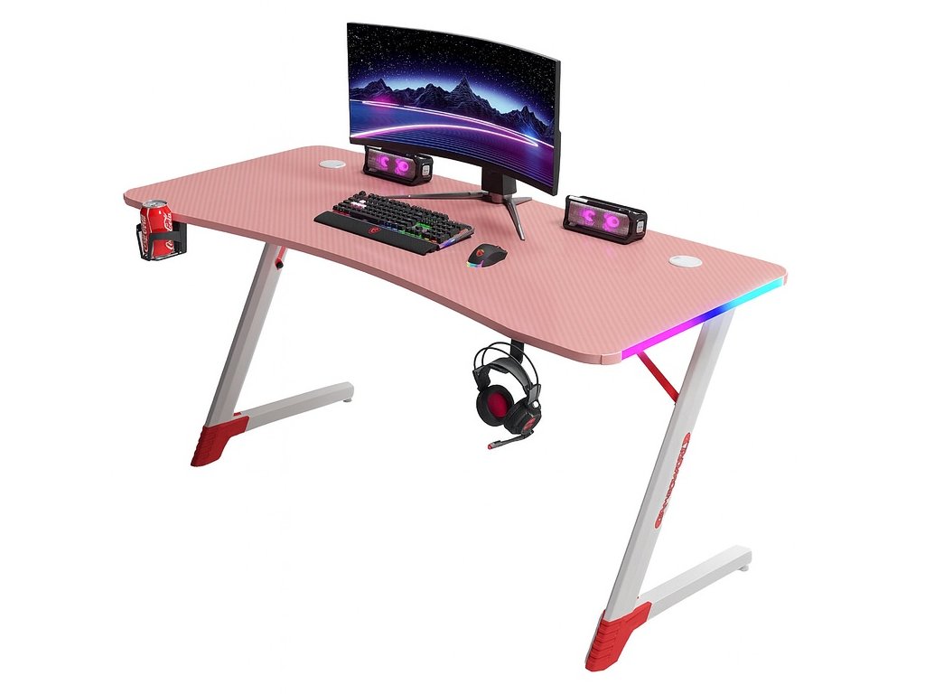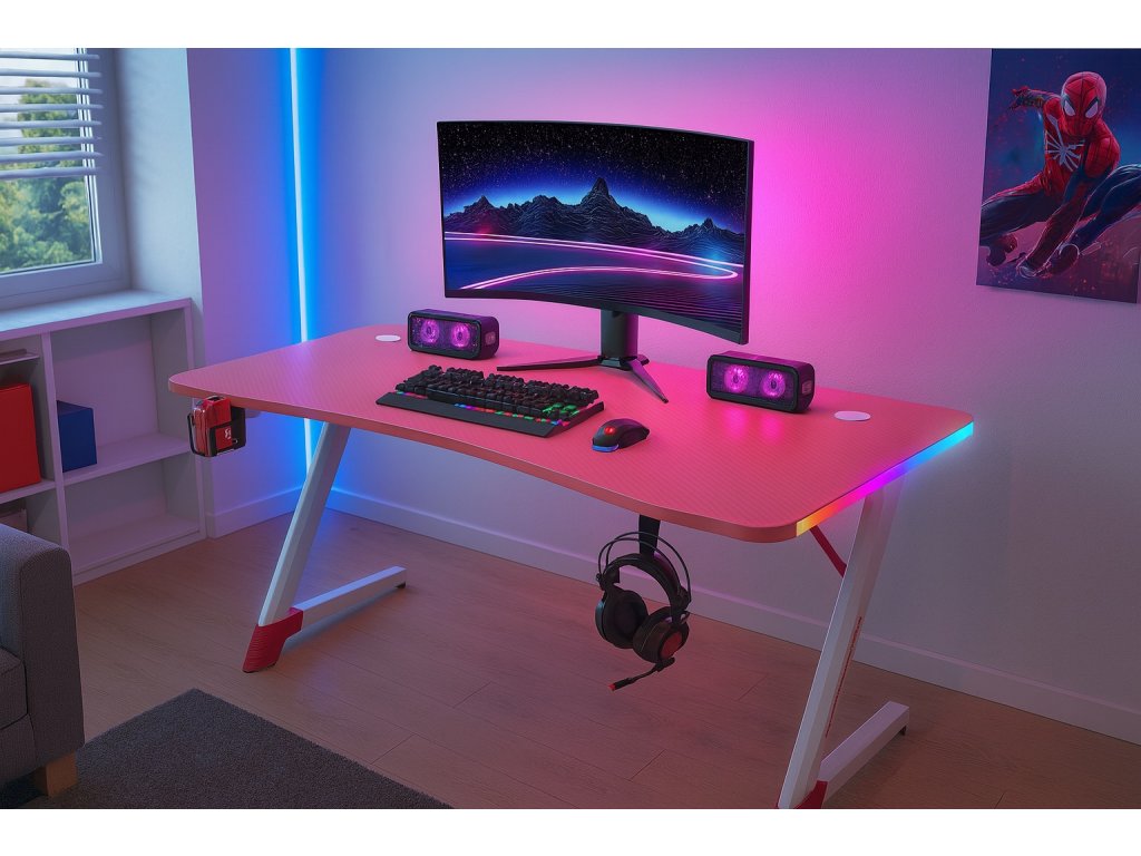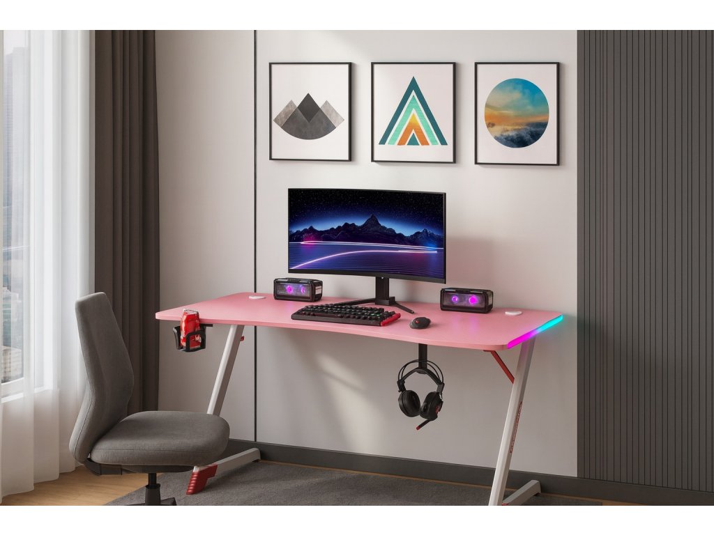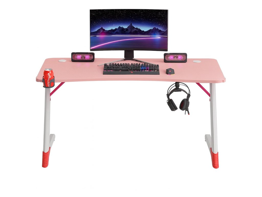 🖥️ Herní stůl / Počítačový stůl pro hráče – Moderní LED design 140 cm růžový