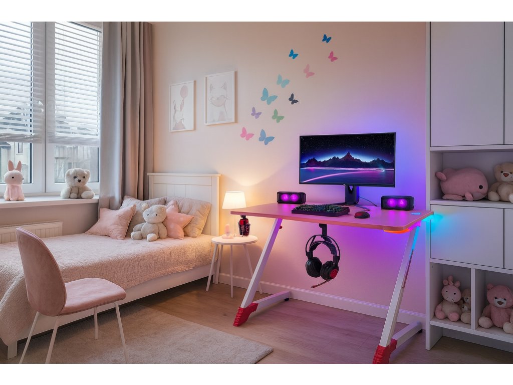 ✔️ Ideální do studentského pokoje – moderní vzhled, praktické držáky a ergonomie dělají z tohoto stolu ideální místo pro hraní i učení.