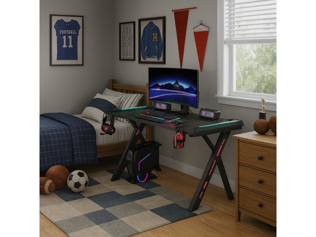 ✔️ Ideální do studentského pokoje – moderní vzhled, praktické držáky a ergonomie dělají z tohoto stolu ideální místo pro hraní i učení.