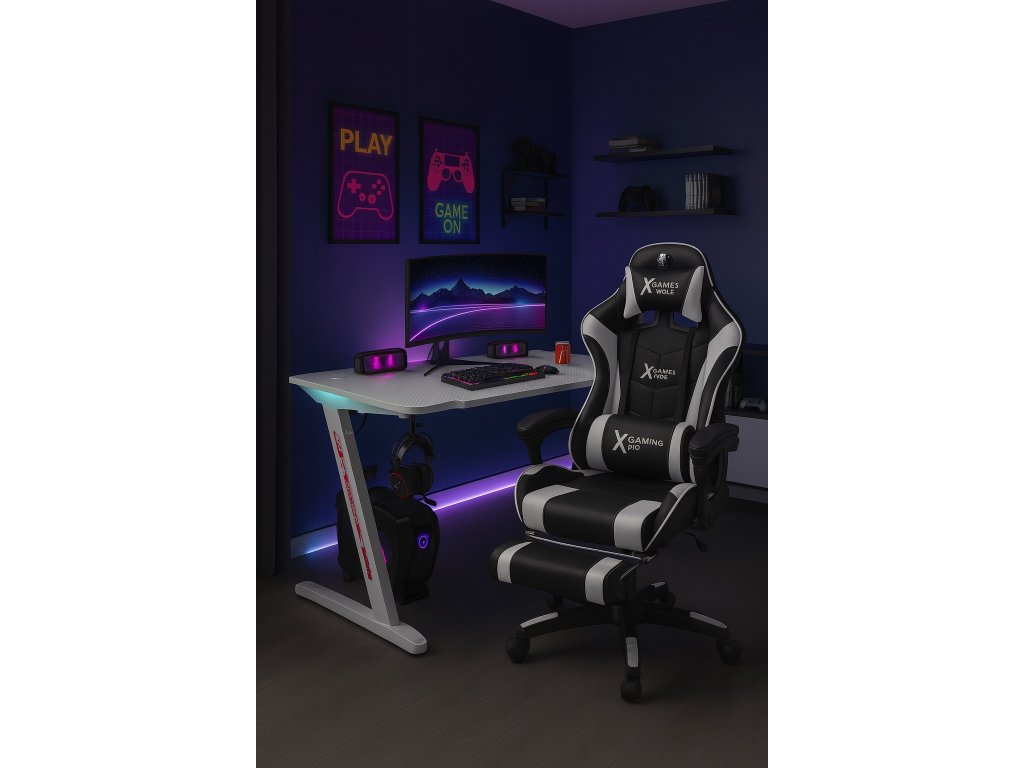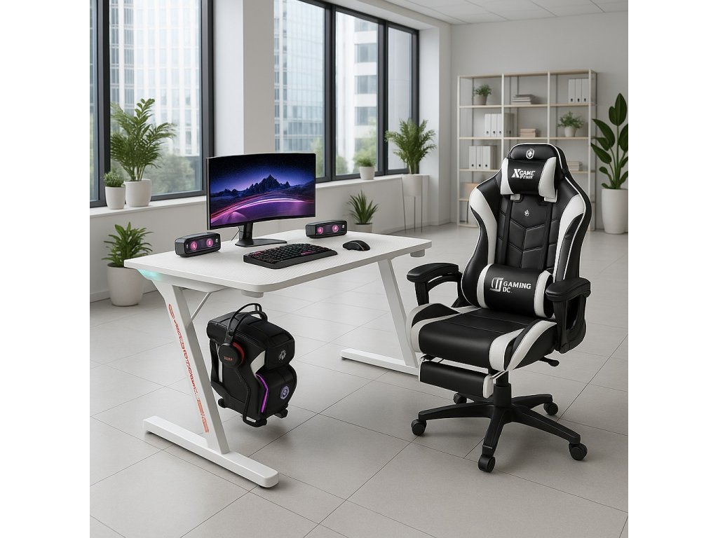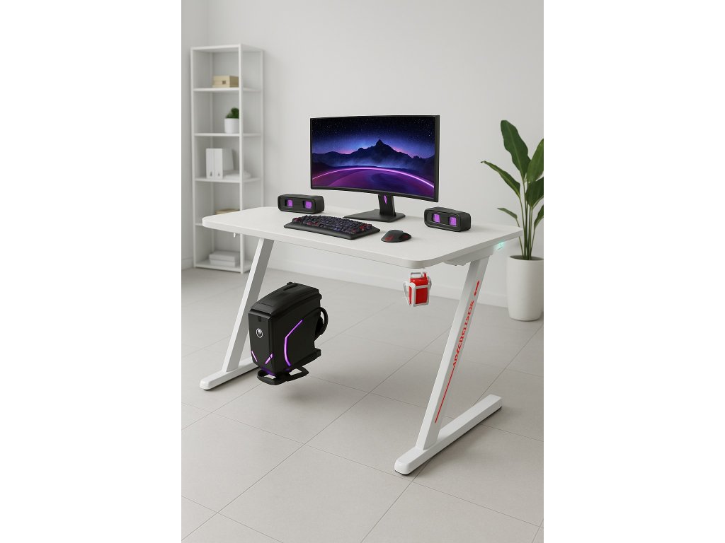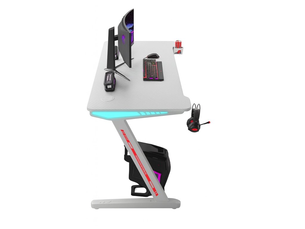 Herní počítačový stůl BG04 – moderní LED 120 cm bílý