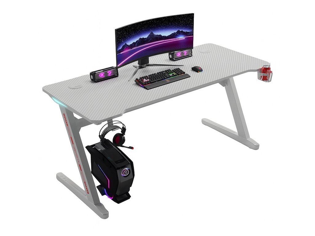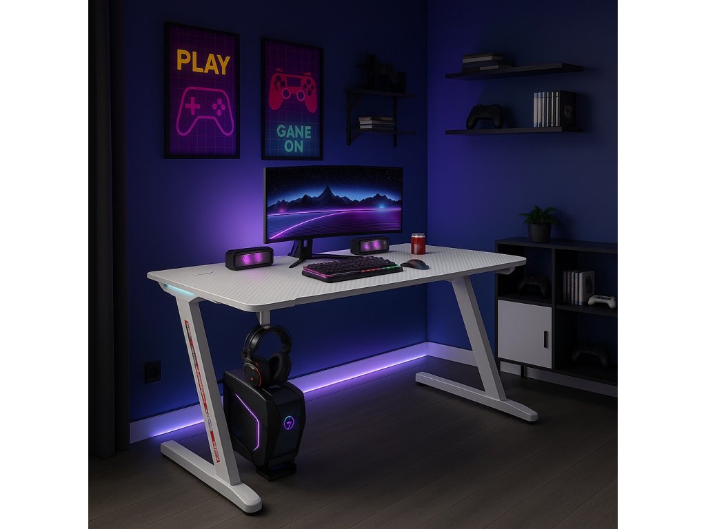 Herní počítačový stůl BG04 – moderní LED 140 cm bílý