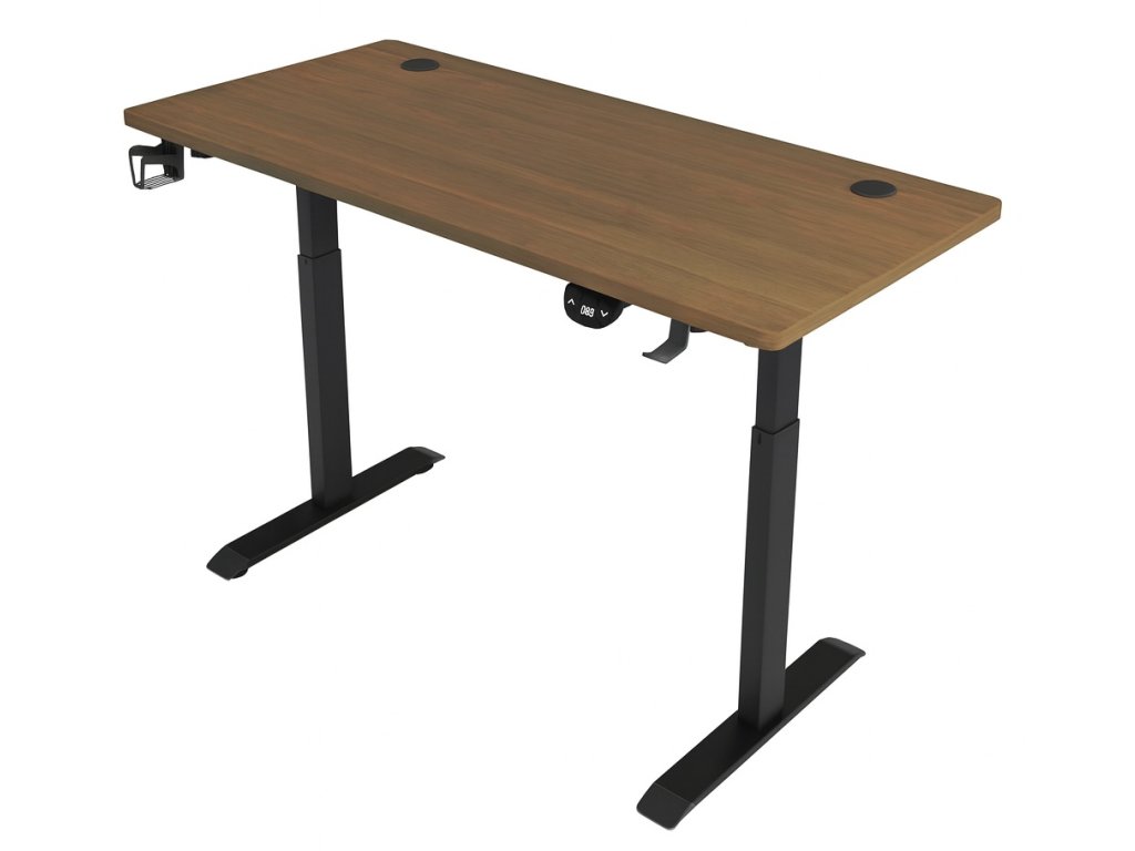 Elektricky nastavitelný stůl 120 cm – výška 72–118 cm, tmavě hnědý s černým rámem, LED podsvícení