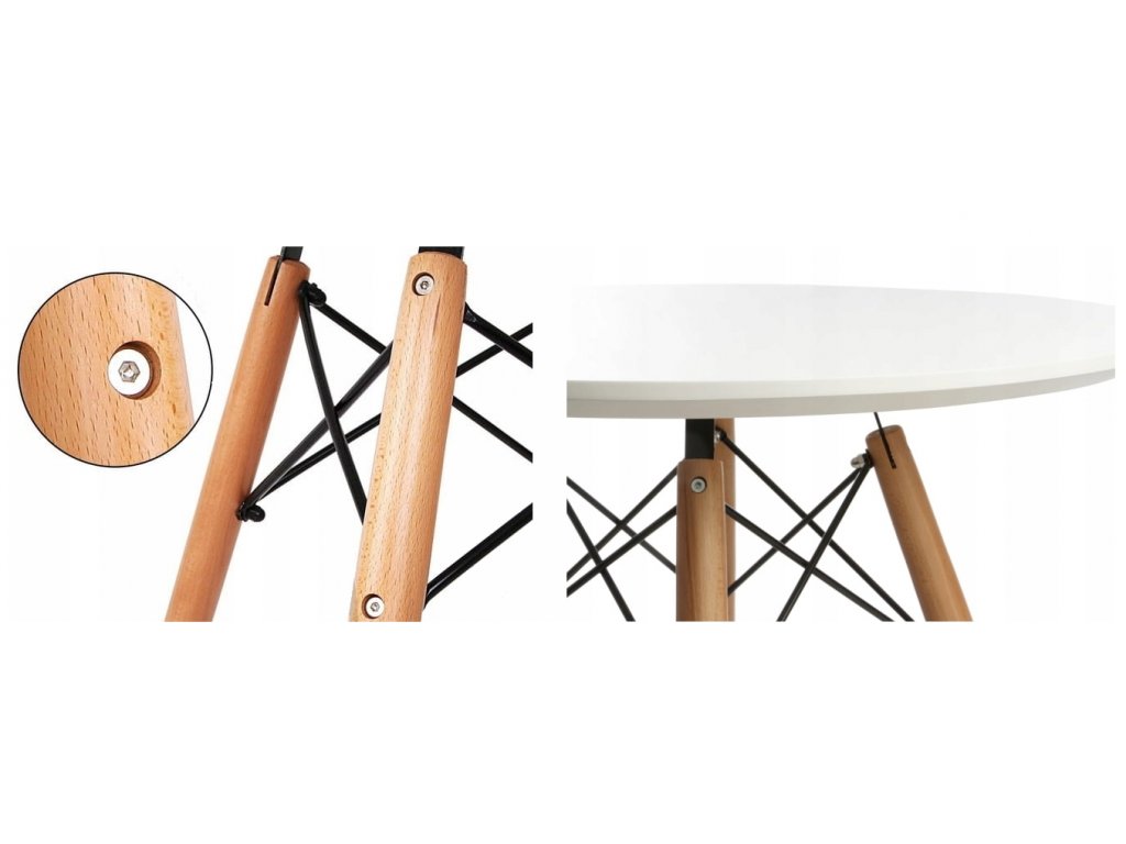 Designový kulatý stůl SCANDI vyrobený z kvalitních materiálů. Povrch stolu je vyroben z MDF desky, proto se stůl snadno udržuje a tak se snadno zbavíte případných nečistot. Nohy stolu jsou vyrobeny z masivního bukového dřeva a zpevněné ocelovou konstrukcí. Ocelová konstrukce je ošetřena černou práškovou barvou, díky čemuž přispívá k jeho eleganci.