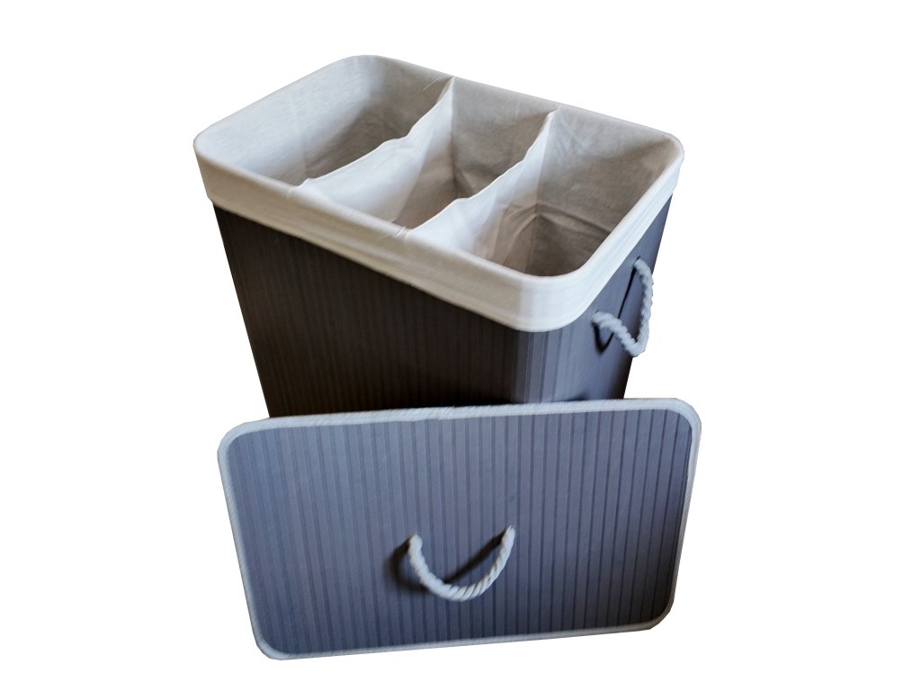🧺 Bambusový koš na prádlo 150 L se 3 komorami šedý– přírodní styl, pořádek a velký objem