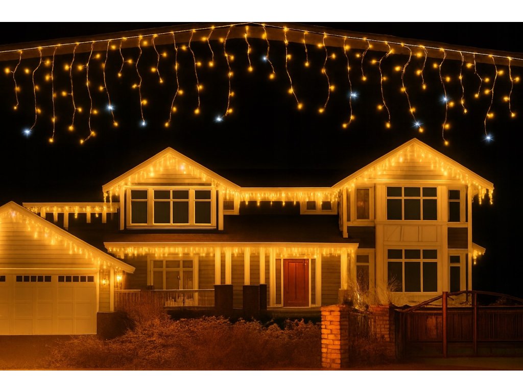 ✅Díky realistickému efektu padajících rampouchů a až 1000 LED diodám získá váš dům, balkon nebo okno výjimečný zlatavý lesk.
