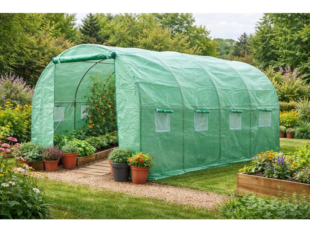 Odolná PP fólie 140 g/m² se zelenou vyztuženou mřížkou je určena pro tunelové skleníky o rozměrech 3 × 6 × 2 m. Zajišťuje vynikající ochranu, perfektní podmínky pro růst rostlin a dlouhou životnost díky UV-5 filtru.