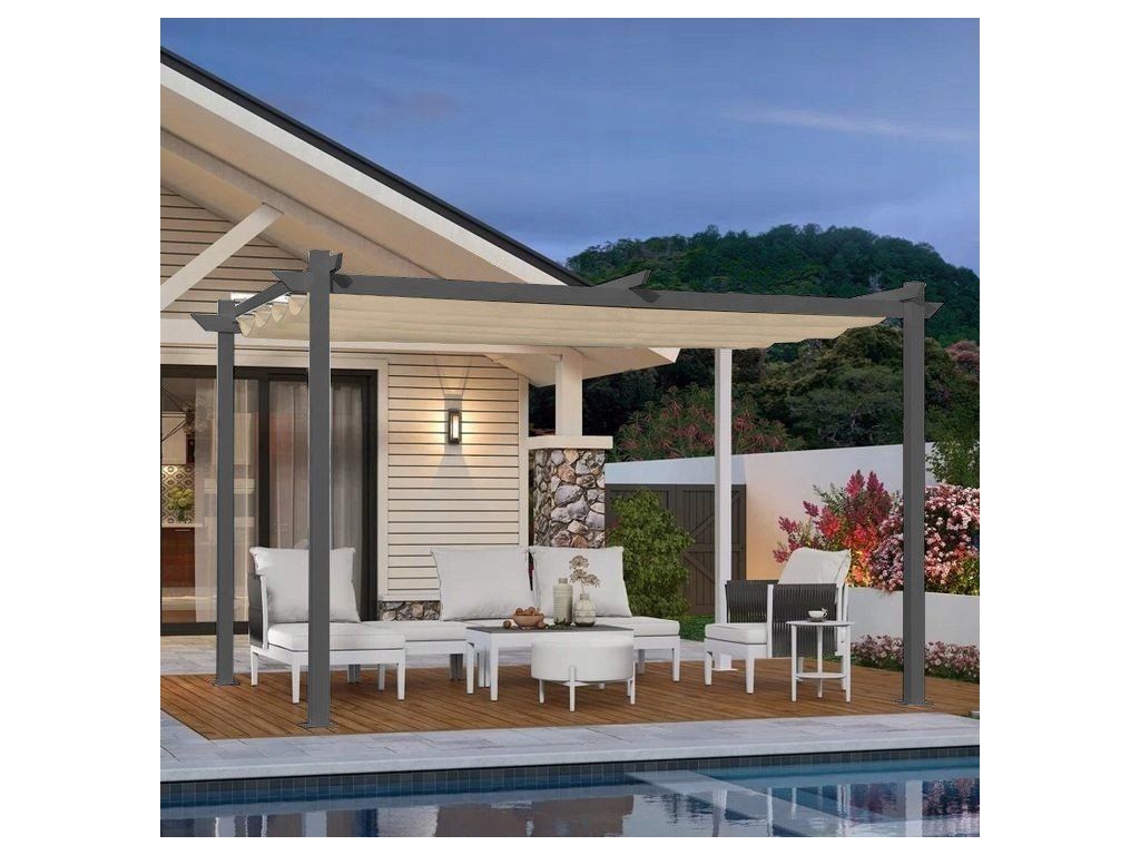Pergola šedá s béžovou střechou 3x3m – moderní řešení pro váš odpočinek