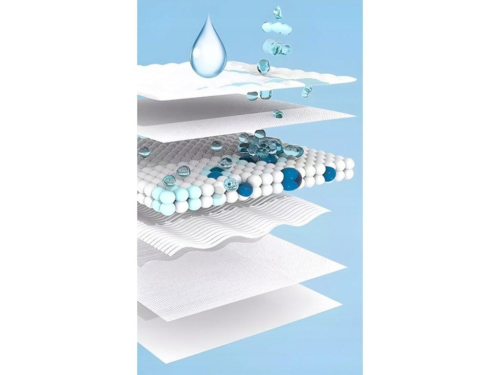 Díky moderní technologii a vysokému obsahu SAP absorbentu poskytují podložky maximální ochranu proti vlhkosti a zápachu. Tekutina se okamžitě přemění na gel – bez rizika úniku.