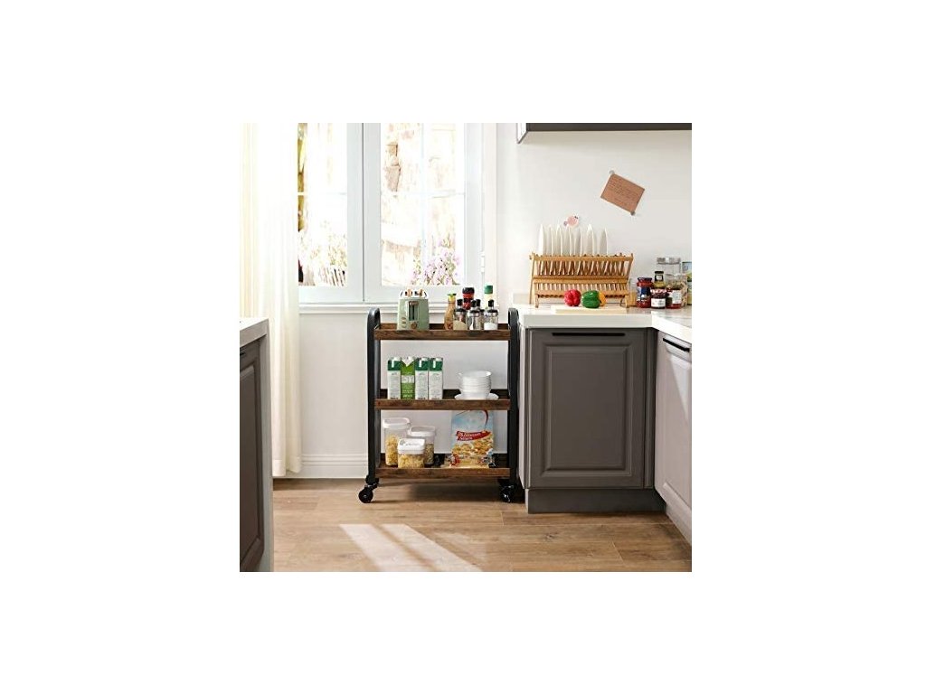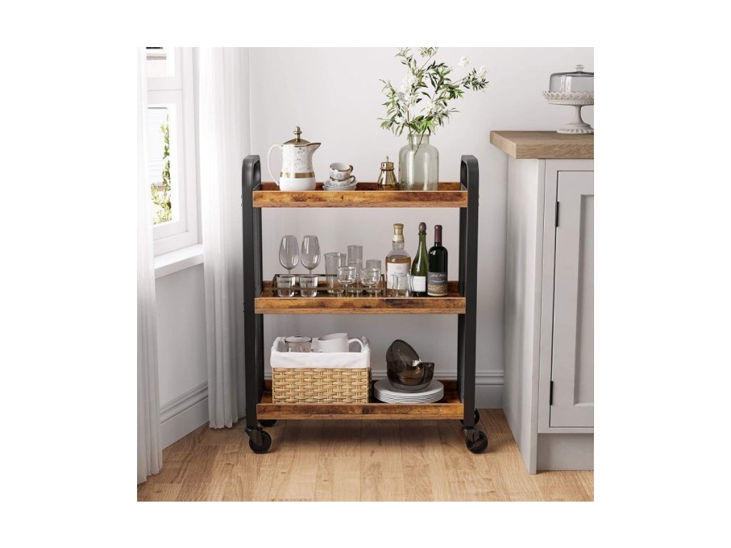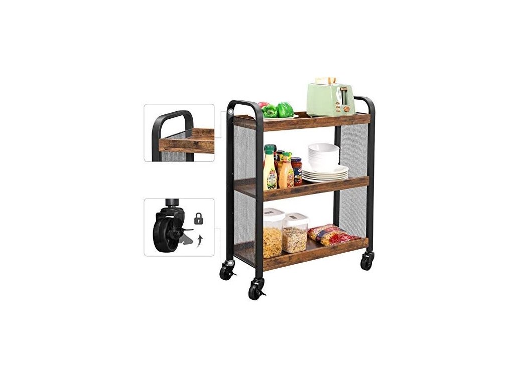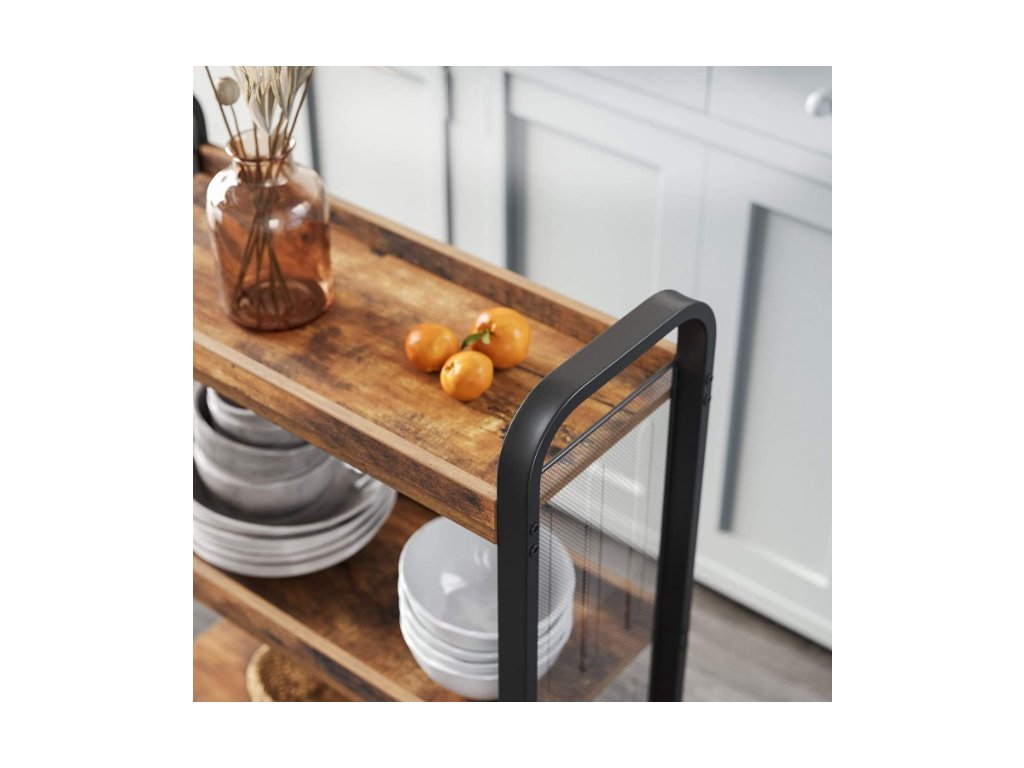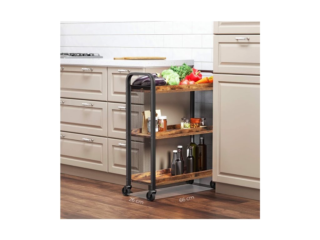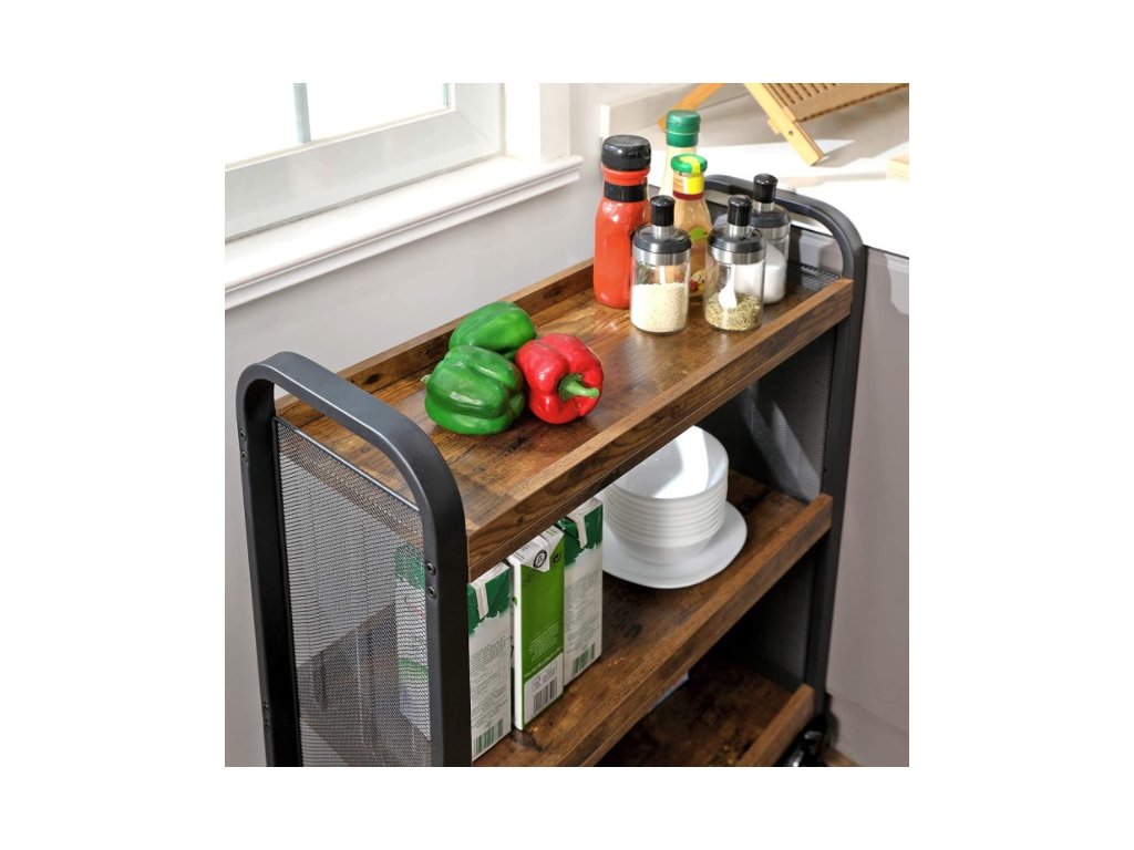 Skříňka má 3 prostorné police, které vám umožní uložit kuchyňské výrobky, potraviny a další potřebné příslušenství. Díky 4 kolečkům je regál mobilní a snadno ho přemístíme kamkoliv.