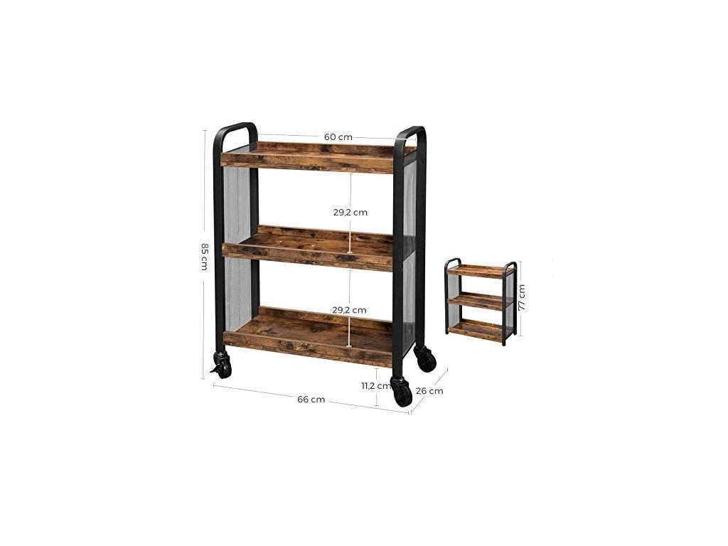 Regál je vyroben v rustikálním stylu, t. J. přiměřeně upravený pro danou dobu. Senzační mobilní skříňka na kolečkách, ideální do kuchyně, komory a dokonce i do ložnice a kanceláře. Regál byla navržen tak, aby zvládl úzké prostory a usnadnil přístup k nejčastěji používaným výrobkům. Díky němu získáváme další prostor, a také nám pomáhá udržovat v domě pořádek.