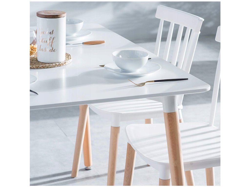 Jídelní stůl SCANDI ve tvaru obdélníku je vyroben z MDF materiálu. Nohy stolu jsou vyrobeny z masivního bukového dřeva, které zajistí dlouhou životnost stejně, jako povrchová deska. Moderní stůl matnou úpravou v bílé barvě doplní všechny kuchyně, či jídelny.