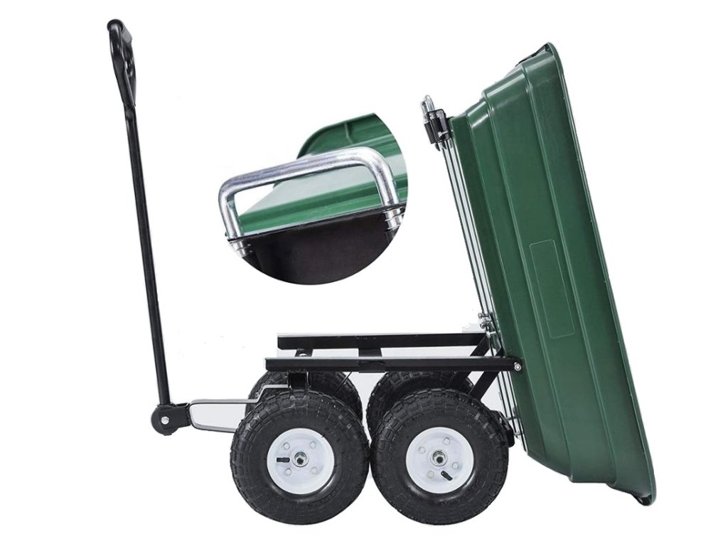 ✔️ Funkce výklopu – rychlé a snadné vyprázdnění Stačí zatáhnout za rukojeť a zvednout korbu – hotovo! Dodatečná bezpečnostní pojistka chrání před nechtěným vyklopením.