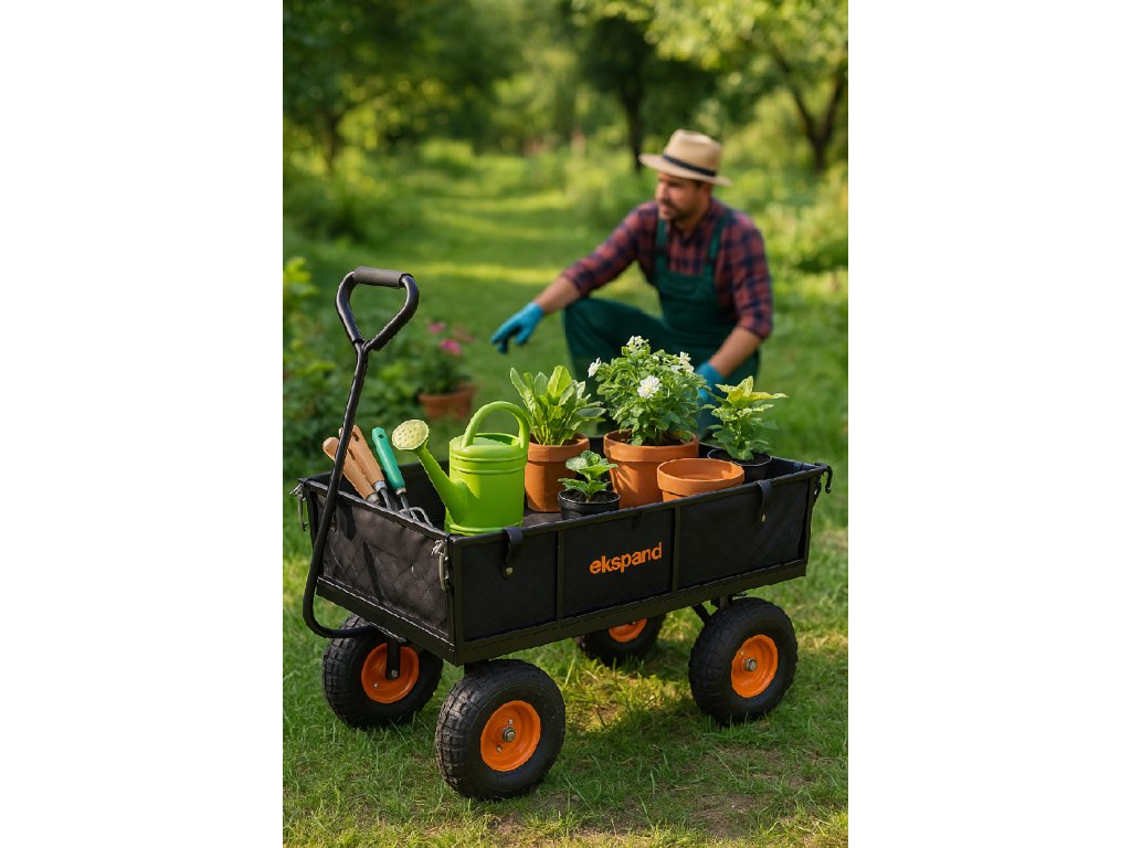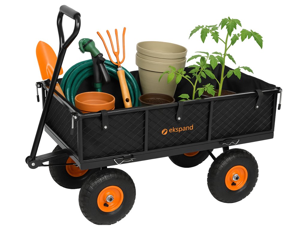 ➡️ Určený pro přepravu zahradního nářadí, sazenic, květináčů, zeminy, větví, listí, ale i ovoce a zeleniny.