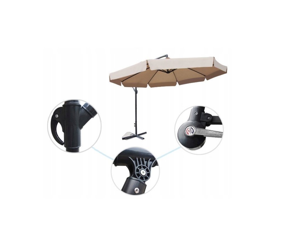 Náš zahradní slunečník má až 8 žebrovou konstrukci. Více žeber znamená lepší materiálové napětí a více podpůrných částí, což dělá slunečník mnohem stabilnějším a silnějším !!!