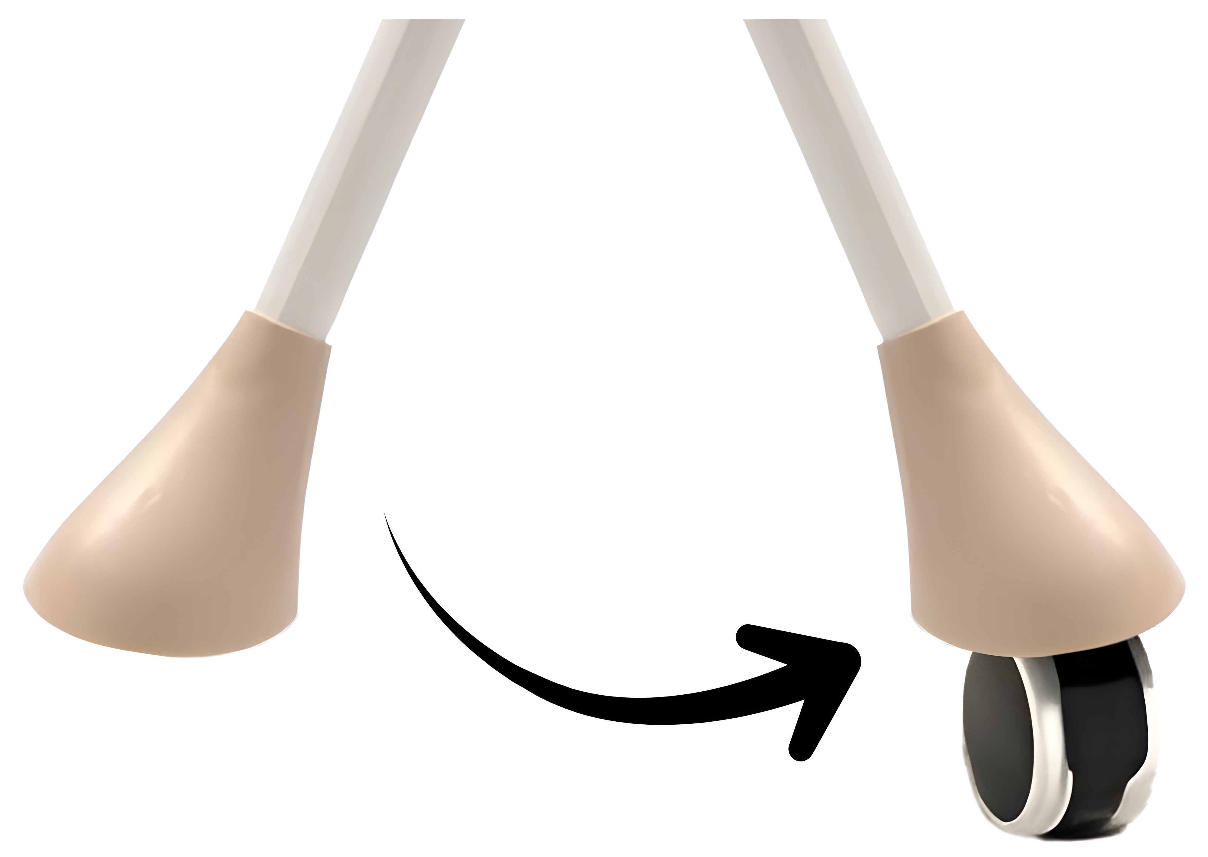 Velikost nožiček zajišťuje stabilitu židličky. Rozestup nohou ji dodatečně stabilizuje. Kovové nohy a montáž pomocí „klik“ zámků posilují konstrukci. Volitelné kolečka usnadňují přesouvání a mají také brzdu.