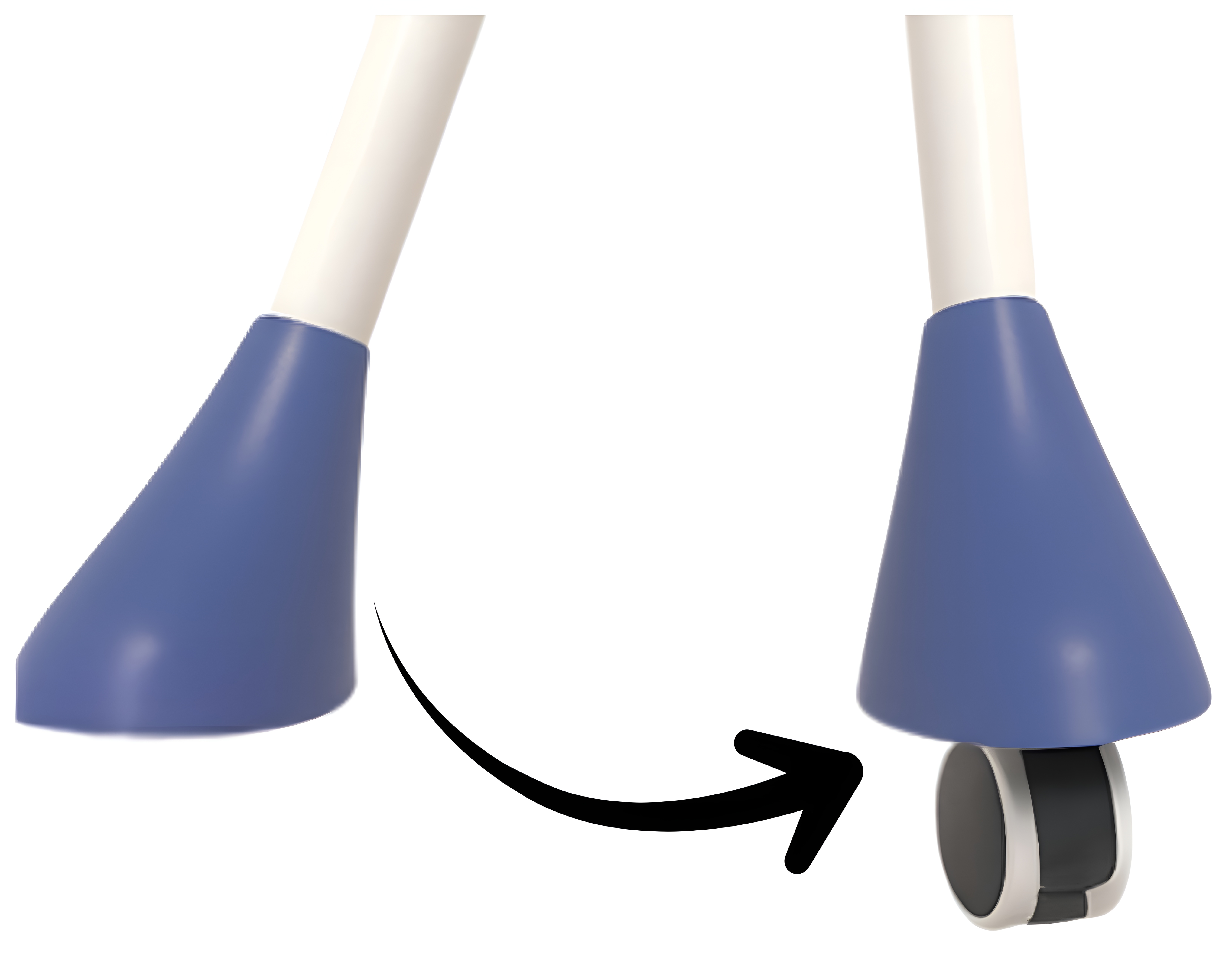 Velikost nožiček zajišťuje stabilitu židličky. Rozestup nohou ji dodatečně stabilizuje. Kovové nohy a montáž pomocí „klik“ zámků posilují konstrukci. Volitelné kolečka usnadňují přesouvání a mají také brzdu.