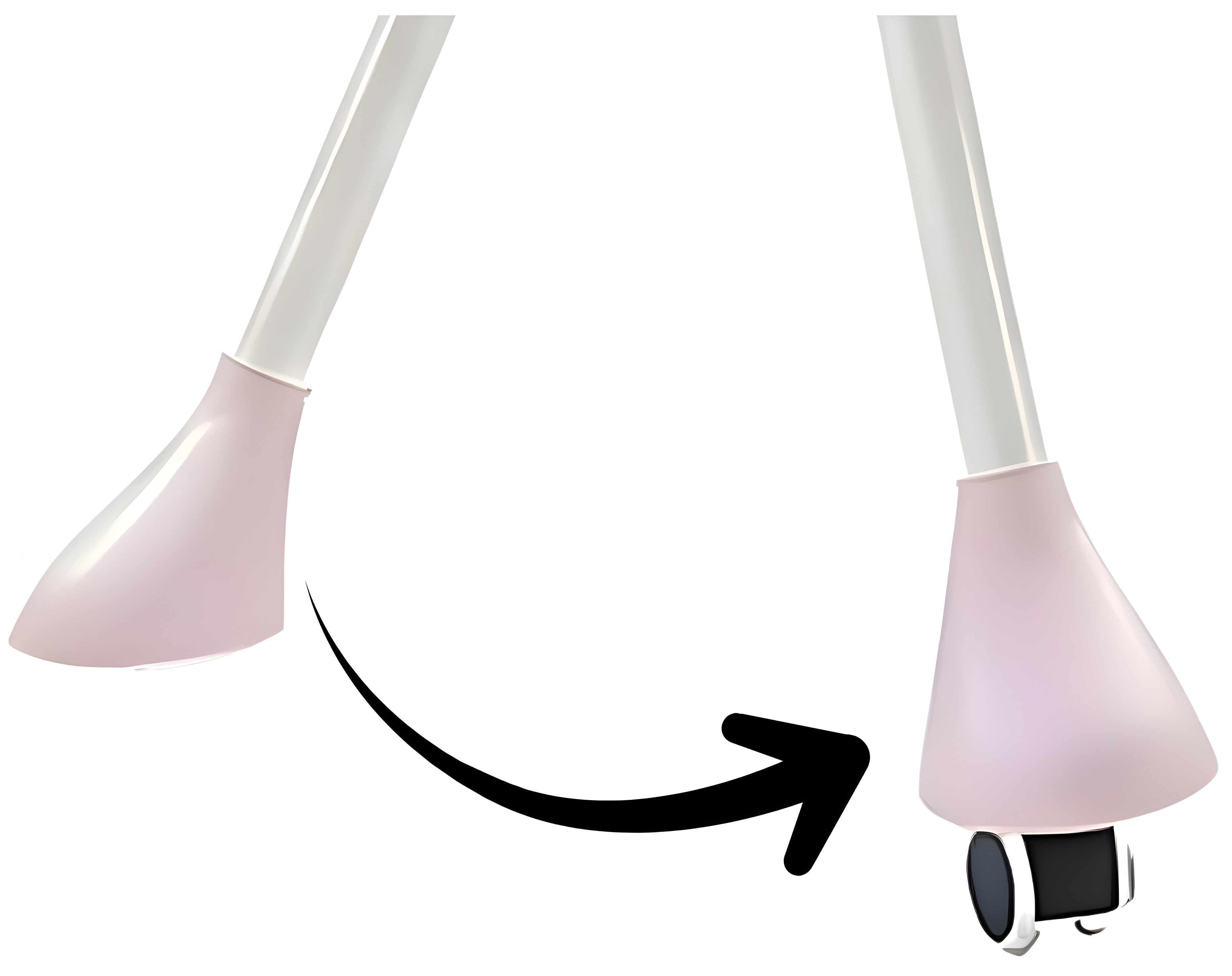 Velikost nožiček zajišťuje stabilitu židličky. Rozestup nohou ji dodatečně stabilizuje. Kovové nohy a montáž pomocí „klik“ zámků posilují konstrukci. Volitelné kolečka usnadňují přesouvání a mají také brzdu.